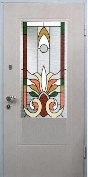 Входные двери в Нефтекумске с применением декора витражом изготавливаются из стального профиля, придающего прочность конструкции, а сама витражная вставка обладает высокой взломостойкостью, поскольку для витражных композиций используется специальное стекло, обработанное особым образом. Усилить надежность витражного элемента можно с помощью использования декоративных кованных решеток.