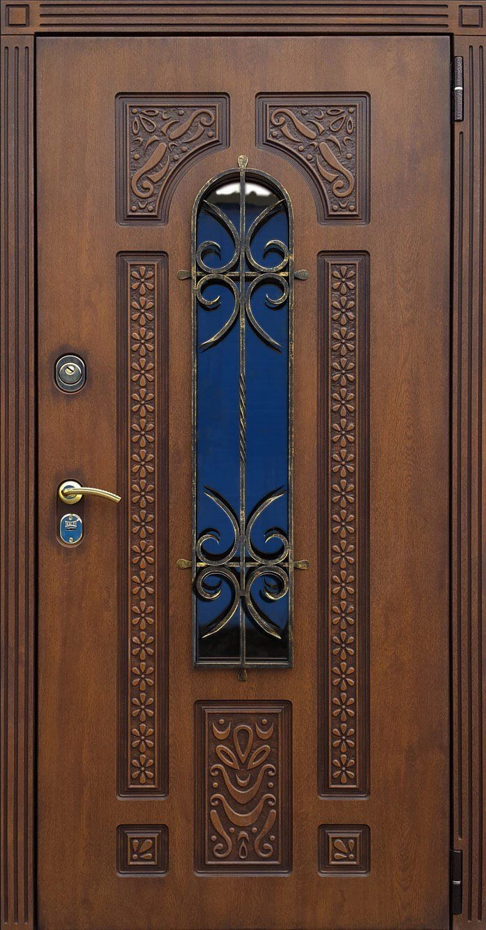 Входные двери в Нефтекумске с применением декора витражом изготавливаются из стального профиля, придающего прочность конструкции, а сама витражная вставка обладает высокой взломостойкостью, поскольку для витражных композиций используется специальное стекло, обработанное особым образом. Усилить надежность витражного элемента можно с помощью использования декоративных кованных решеток.