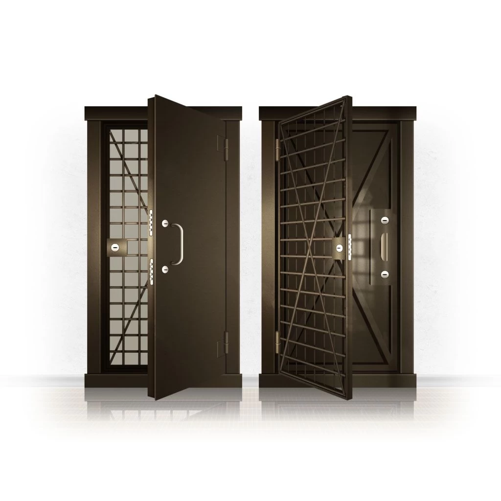 Металлические двери КХО и КХН представляют собой входные блоки, обладающие высоким уровнем взломостойкости и состоят из трех основных элементов: усиленного каркаса, сплошного металлического полотна и решетчатой двери. Дверной блок изготавливается из стального уголка 100*100 мм. Места крепления блока к стене цементируются и закрываются стальными наличниками шириной 40 мм. Крепеж заходит вглубь стены на 80 мм. В конструкции внешней створки монтируются ребра жесткости, для обшивки используется сталь толщиной не менее 3 мм. Внутренняя решетка изготавливается из прутка диаметром 16 мм. Размер ячеек решетки должен составлять не более 15 на 15 см. В точках пересечения прутья надежно приваривают друг к другу. В КХО и КХН необходимо поддерживать определенную температуру и влажность. Для этого внутреннее пространство глухой двери заполняется теплоизоляционным материалом, а по периметру двери приклеивается уплотнитель. Такие двери оборудуются замками с повышенным уровнем взломостойкости. Специализированные двери КХО и КХН в Нефтекумске могут быть оснащены сигнализацией, в конструкции могут быть проушины для навесного замка и элементами для опечатывания. Если идет речь о двери в комнату хранения оружия, в створке оборудуется окно для выдачи оружия и спец. средств, которое накрывается стальной дверцей.